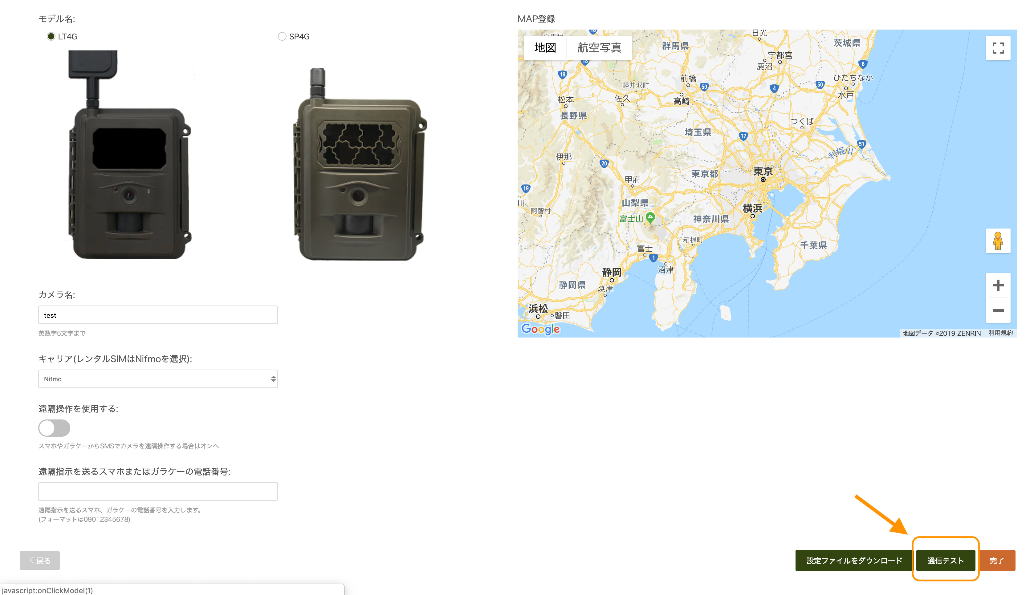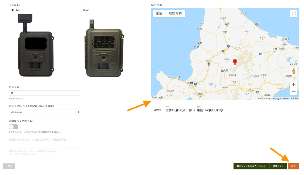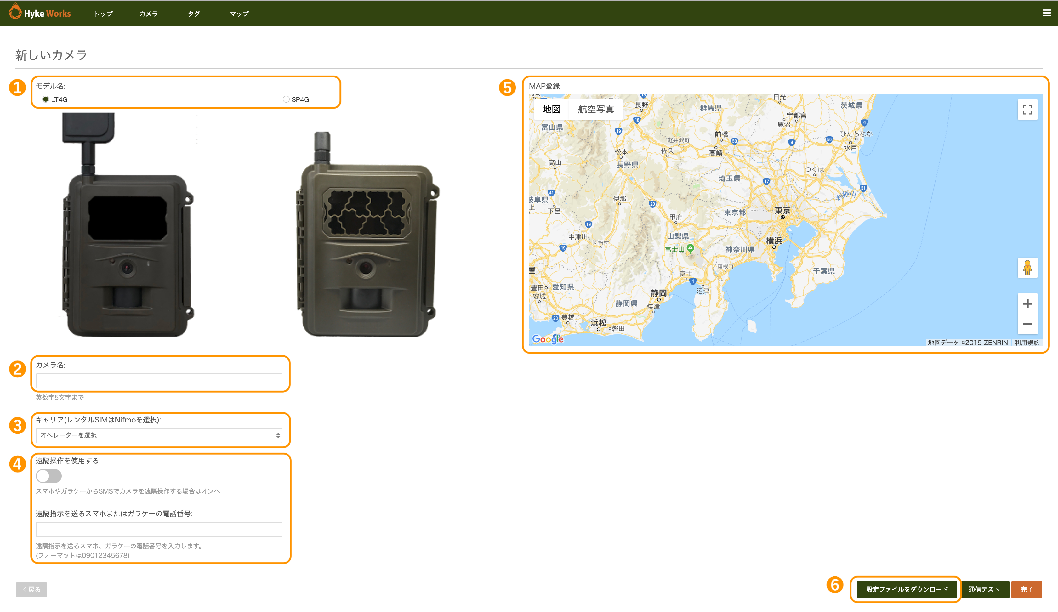5.「Map登録」でハイクカムを設置する場所をクリック(任意)