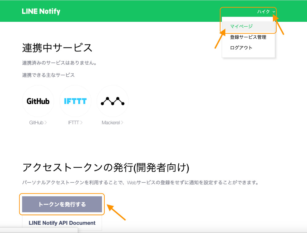 3.ログイン後マイページを開いて、「トークンを発行する」をクリックします。