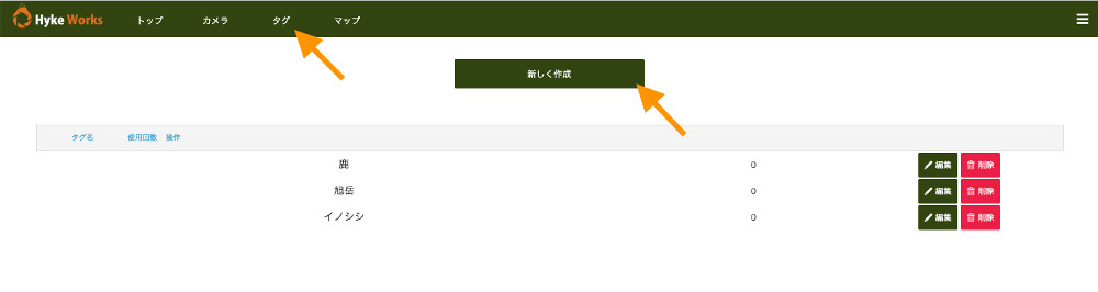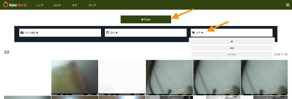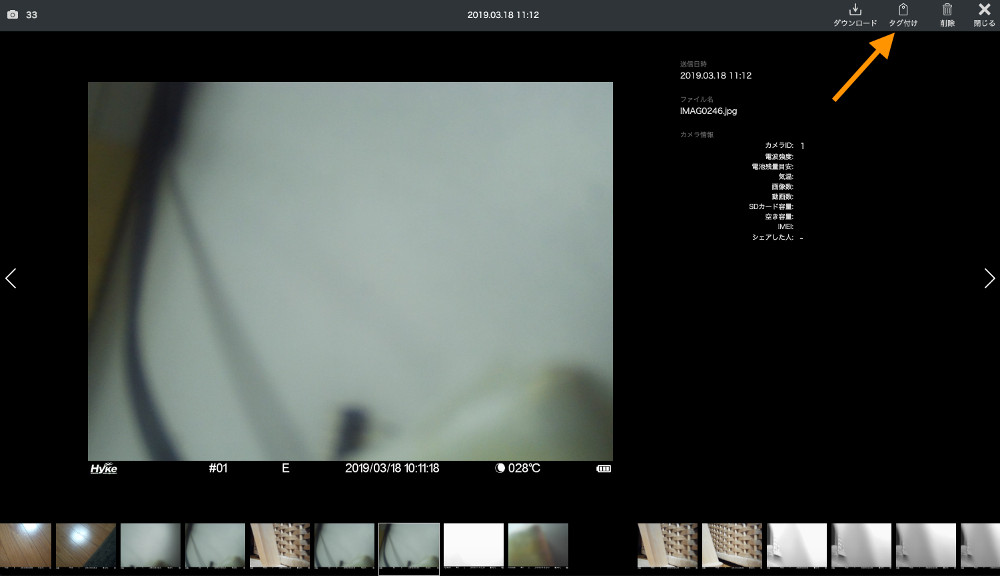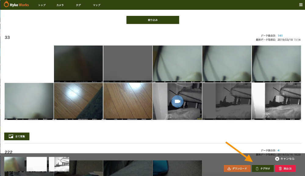 現場名や動物の種類など任意のタグを作成し、アップロードされたデータにタグを付与することでデータ管理に役立てます。