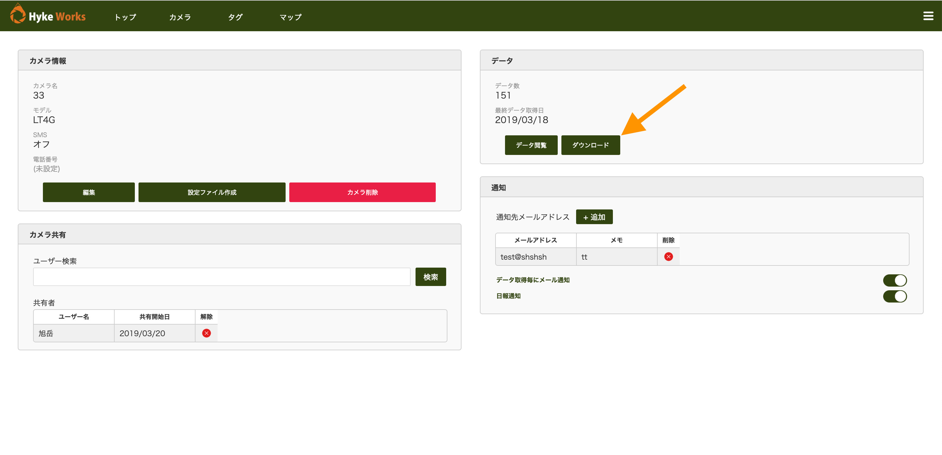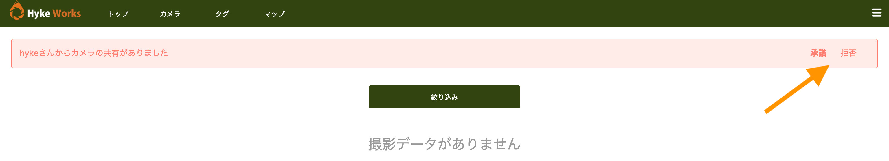 ハイクワークスユーザーは無料アカウントを作成したユーザーとカメラで撮影したデータを個別に共有することができます。