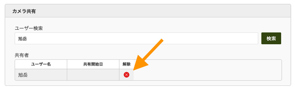 2.カメラ共有内で相手方のユーザー名を検索します。